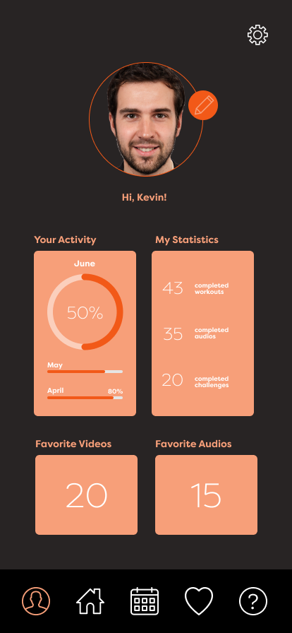 Keep track of information like your monthly activity completed workouts, challenges and audio.