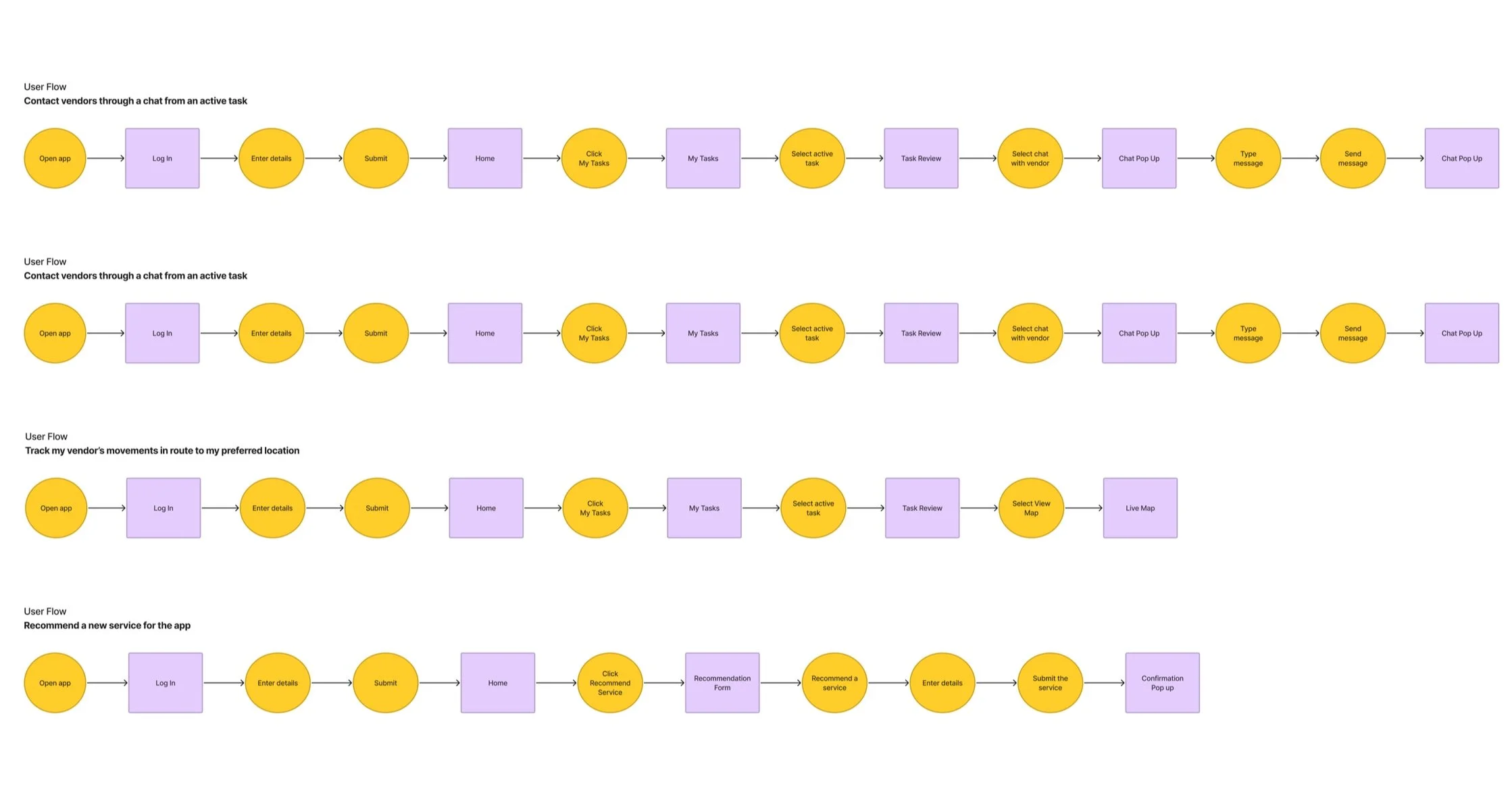 Using the user stories as a catalyst we began to build our user flows. Our team was tasked with different flows my flows included: