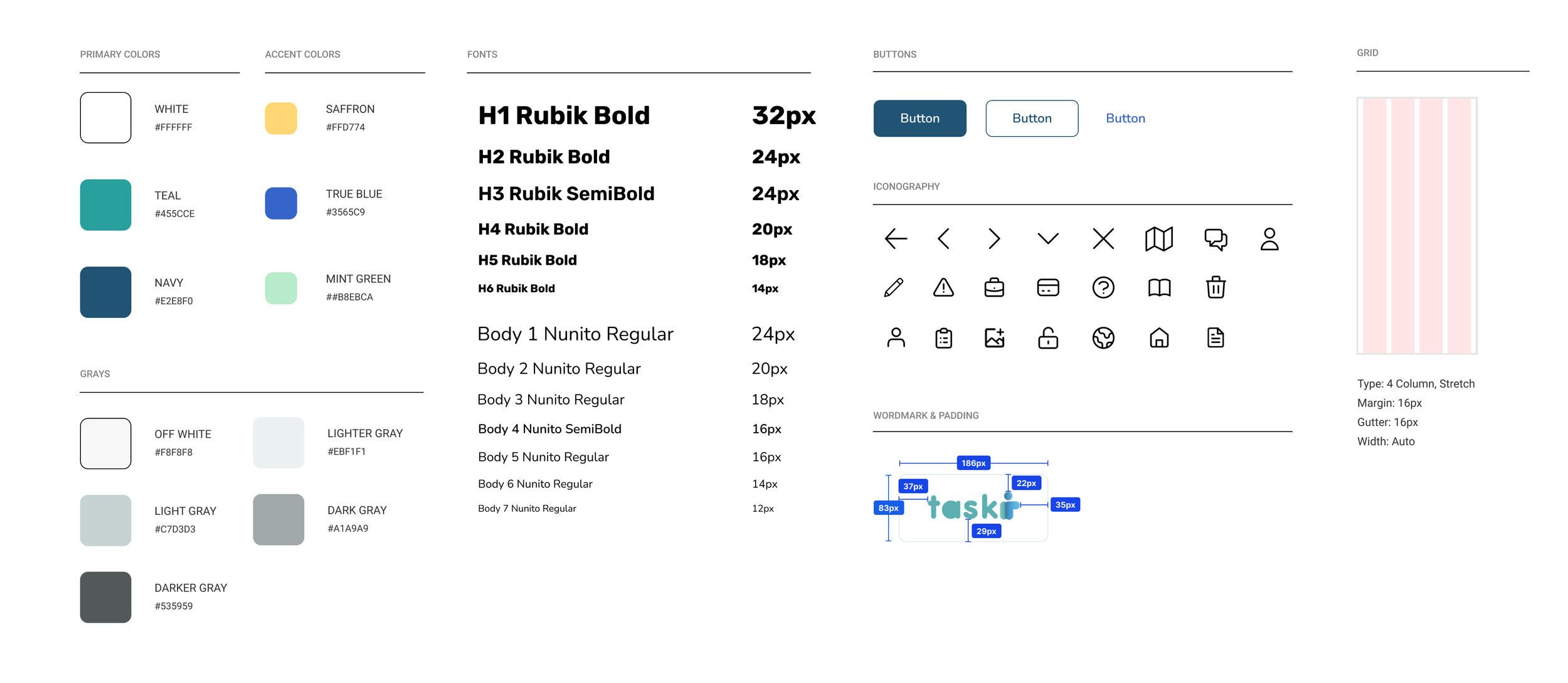 To maintain consistency of colors, fonts sizes, UI elements and grid system the team and I abided by the following style guide.